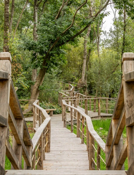Once the laurel had gone, we set about creating our magical walk through the woods: a feat of local skill and craftsmanship. Now, you can stroll along more than 80 meters of a timber walkway that winds through the ancient trees and across centuries-old field boundaries – from a time before the wood when the land was used for pasture. As always, designed with the land’s best interests in mind, we made sure that the walkway winds around the trees and other natural points in the landscape.