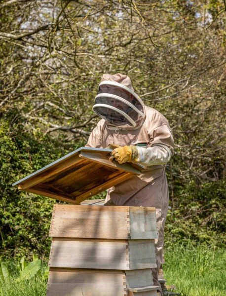 When it comes to honey bees, there is a range of approaches a beekeeper can take. One end of the spectrum is to think of bees as livestock which produce a usable product (honey and beeswax). In this approach, every measure is taken to increase honey production. This could result in bee populations being at greater risk of disease and parasites, outside of the relatively artificial environment of the bee hive and its attendant interventions from the beekeeper. The other end of the spectrum is natural beekeeping, which prioritises the interests of the bees, encouraging them to thrive for their own sake. Our bee team takes this approach, intervening only to encourage hives to thrive and so increasing the chances that more wild colonies will be established.
